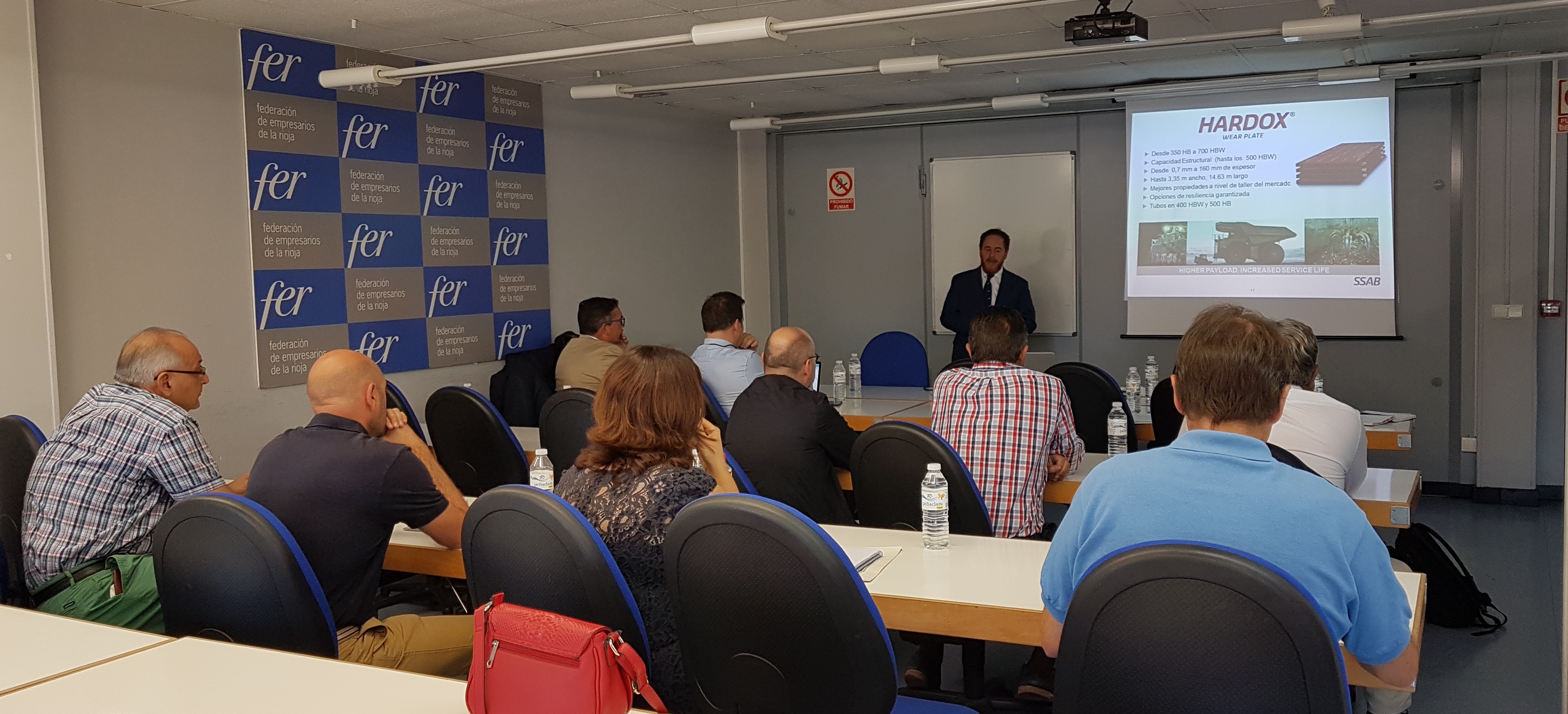 La Federación de Empresarios de La Rioja ha sido un año más, la sede en la que los empresarios del sector de los áridos de la Comunidad Autónoma han celebrado su Asamblea General Ordinaria, el pasado 23 de junio. En esta ocasión, además de contar con la asistencia del presidente de Anefa, Ramón Ruberte y de su director, César Luaces, los empresarios han podido conocer de mano de Joseba Apaolaza las novedades que una firma como SABB HARDOX tiene para el sector.