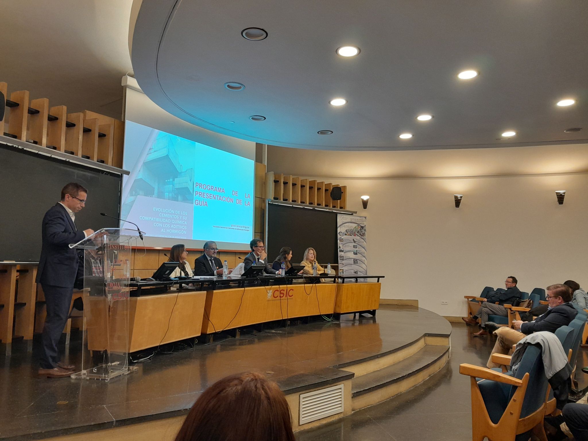La sesión se inauguró con la intervención de Ángel Castillo, director del Instituto de Ciencias de la Construcción Eduardo Torroja (IETcc-CSIC), y Aniceto Zaragoza, presidente de la PTEH. Tras una bienvenida con café, los asistentes han asistido a la presentación de la guía, coordinada por Ignasi Jarauta, gerente de ANFAH, y con la participación de destacados expertos del sector como José Luis García (IETcc), Pere Borralleras (Master Builders Solutions), José Antonio Rodríguez (MAPEI Spain), Cristina Valverde (SIKA), Ignacio de la Fuente (CHRYSO) y Vicente Diago (MC-Bauchemie).